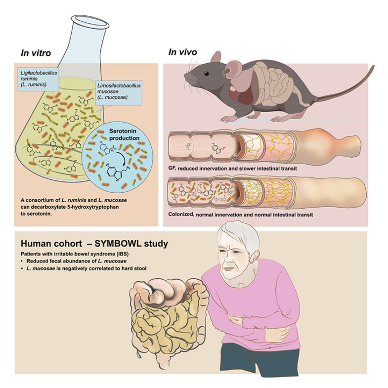 Швейцарские исследователи обнаружили, что микробиота кишечника самостоятельно вырабатывает серотонин. Они доказали, что сочетание бактерий кишечника человека, состоящее из Limosilactobacillus mucosae и Ligilactobacillus ruminis, способно производить серотонин in vitro путем через химическую его предшественника. Результаты исследования опубликованы в журнале Cell Reports.